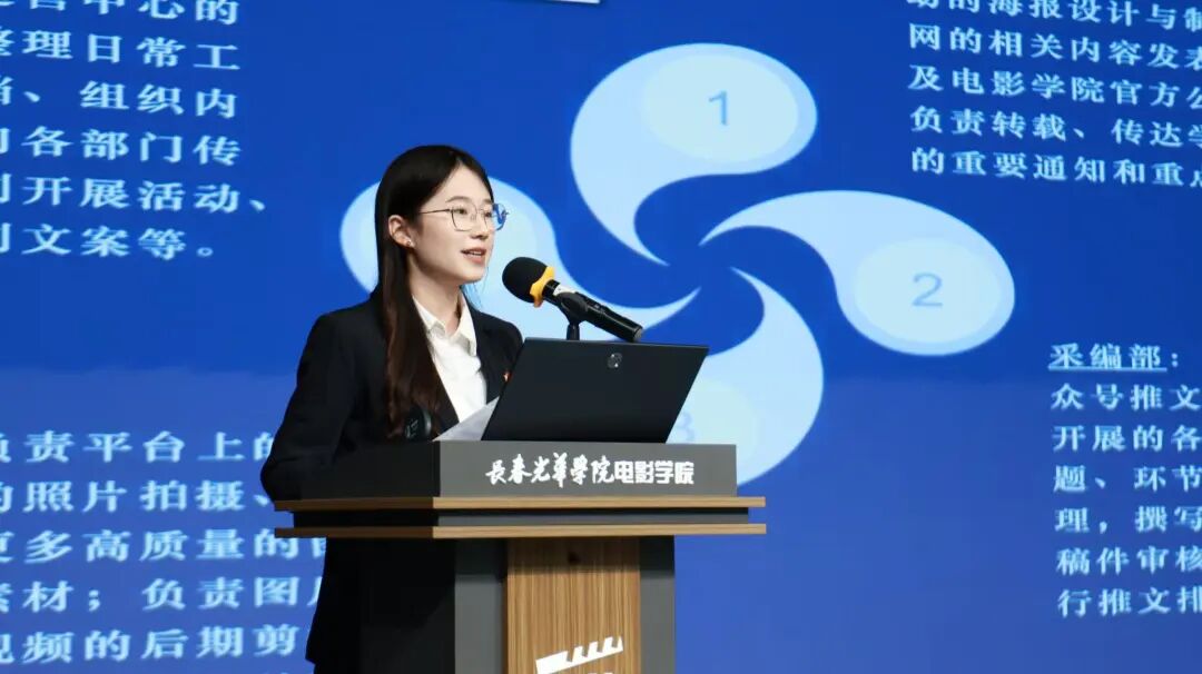 宣讲环节结束后,电影学院团总支书记白浩阳上台作总结发言。他首先肯定各组织负责人的宣讲,认为其既清晰展现了组织职能与特色,也传递出团学工作的热情,为新生搭建了优质了解平台。他强调,团学组织不只是“活动执行队”,更是培养青年能力的“成长孵化器”,过往成员在此锤炼的策划、协作能力,都是未来发展的宝贵财富。