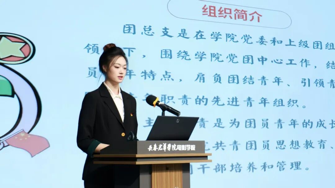 大会伊始,团总支书记白浩阳上台对25级的新生们表达了期许和希望。他用“责任托举成长,服务成就价值”的感悟激励新生,鼓励大家以创新思维投身团学工作,在服务同学中实现自我提升,并寄语新一届成员传承优良作风,在新起点上续写佳绩。