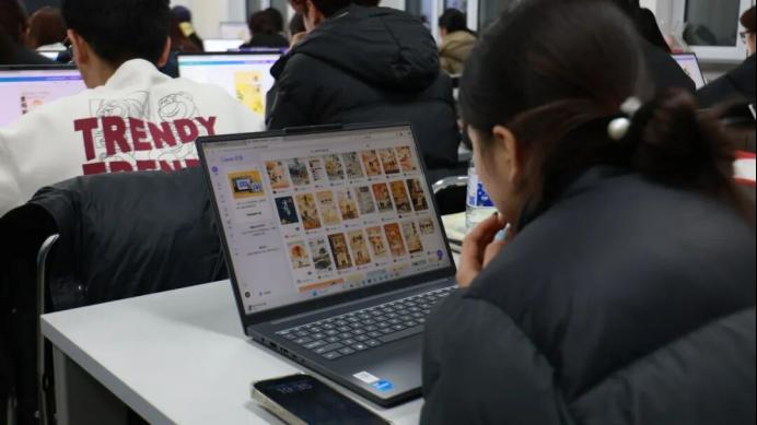 考虑到培训的实操性,刘姿部长还现场演示了海报设计软件的基础操作流程,从画布设置、素材筛选到文字排版、导出格式,每一步均细致讲解,同时针对同学们提出的“如何快速找到贴合主题的素材”“不同活动该用何种设计风格”等疑问,逐一耐心解答,并结合部分同学的实时设计初稿进行针对性指导,提出修改建议。培训过程中,全体同学均携带电脑参与实操,紧跟主讲节奏完成练习,遇到问题及时举手提问,现场学习氛围浓厚。